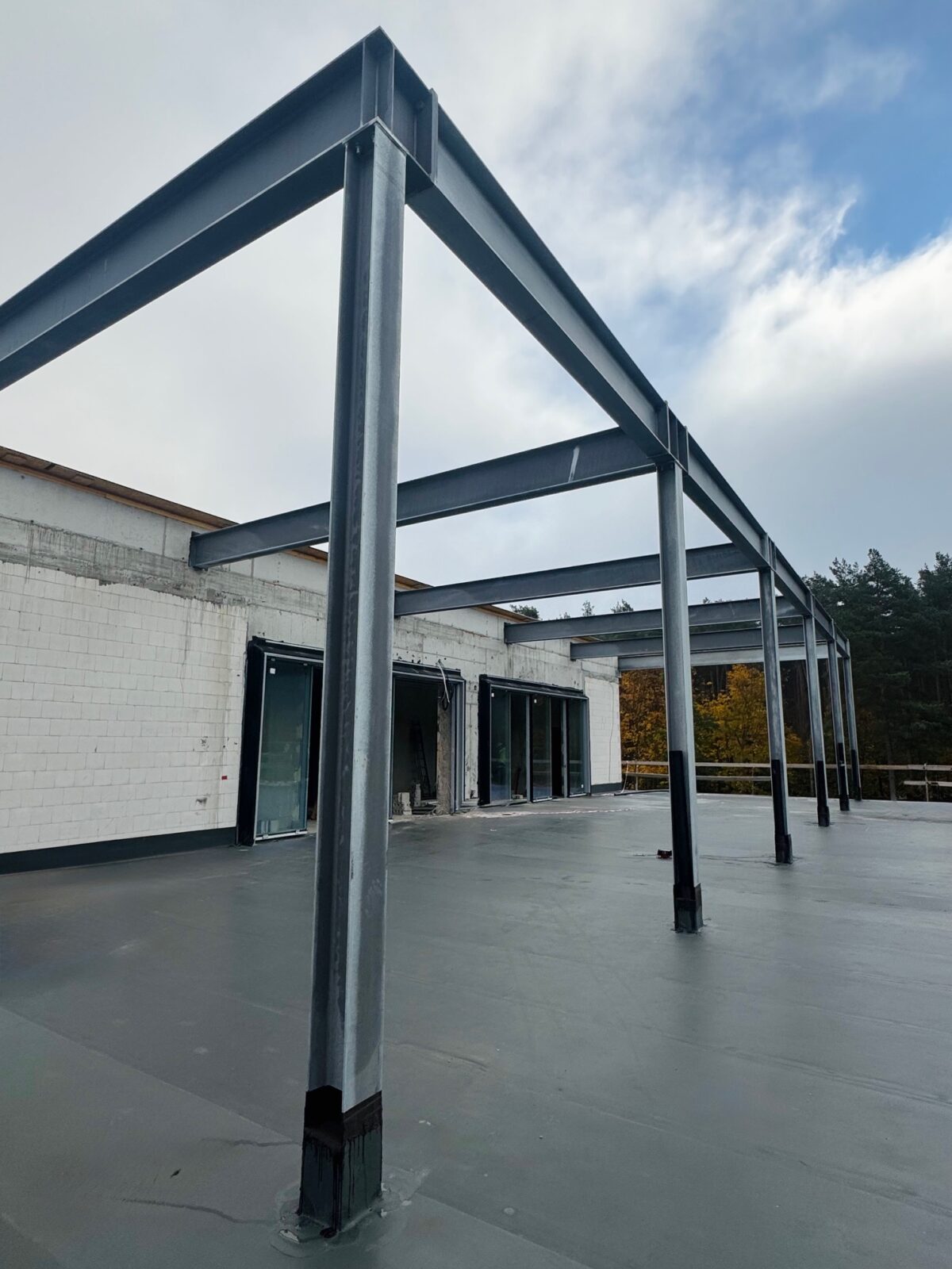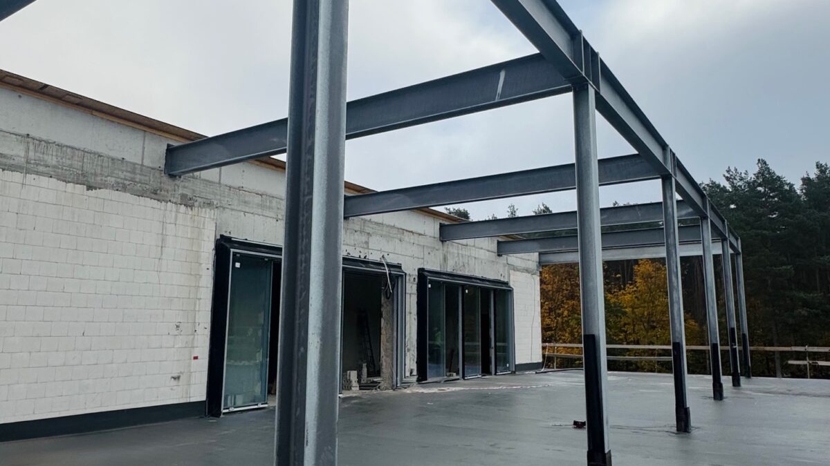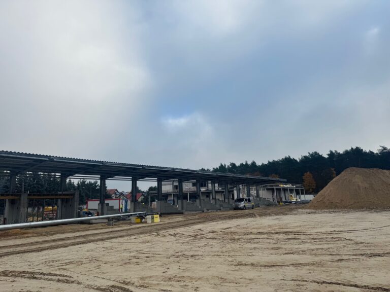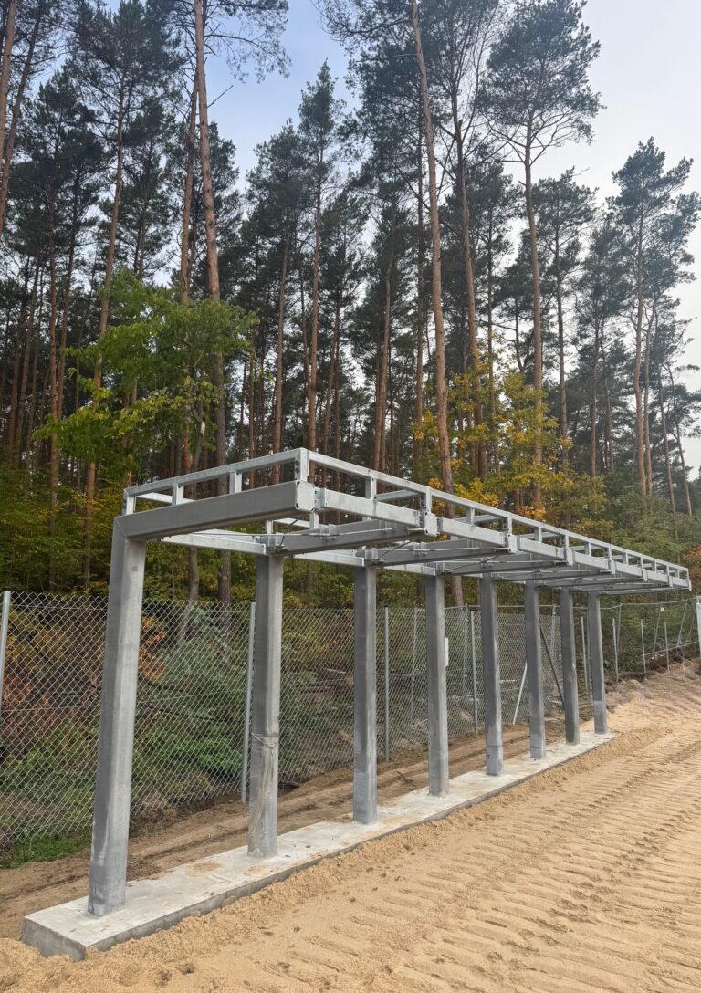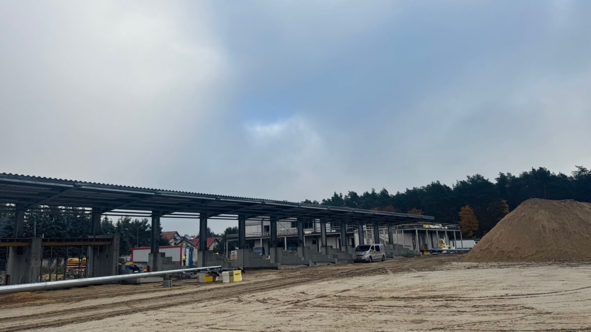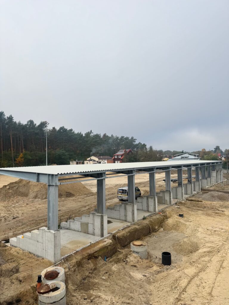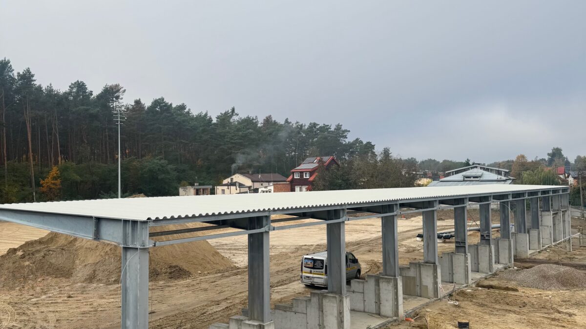 - Zakończono montaż konstrukcji budynku świetlicy, trybun oraz wiat na boisku