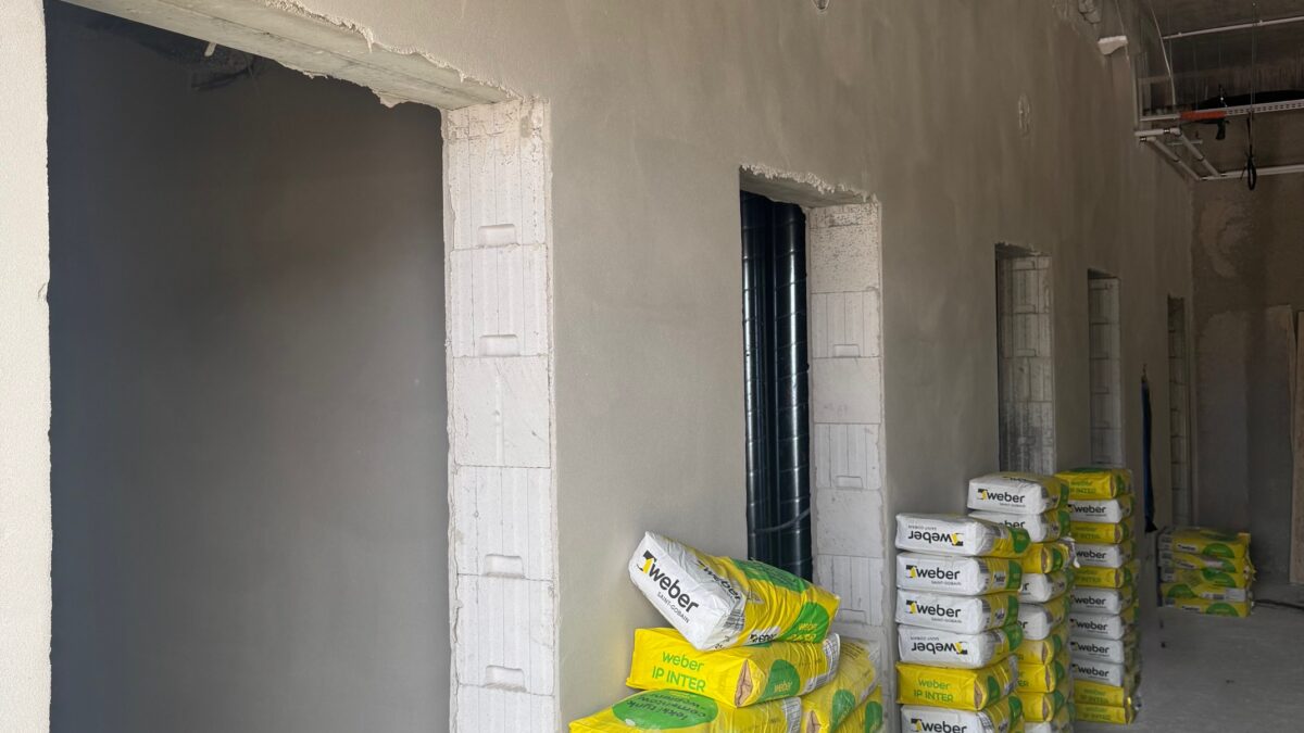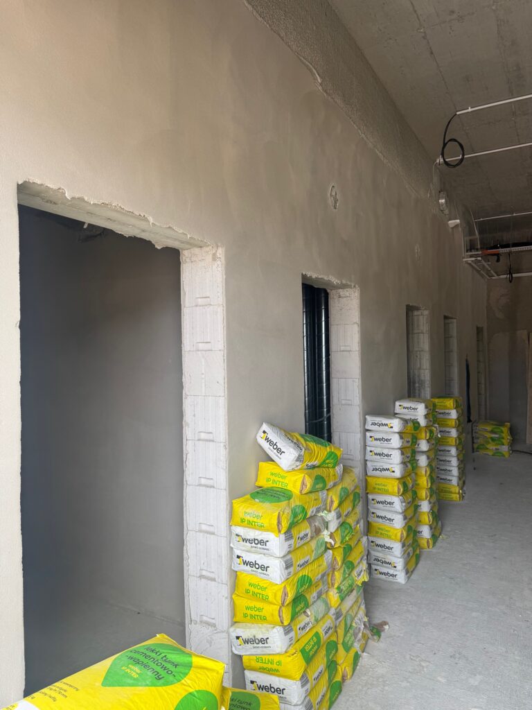 - Trwają prace wykończeniowe, tynki, montaż stolarki