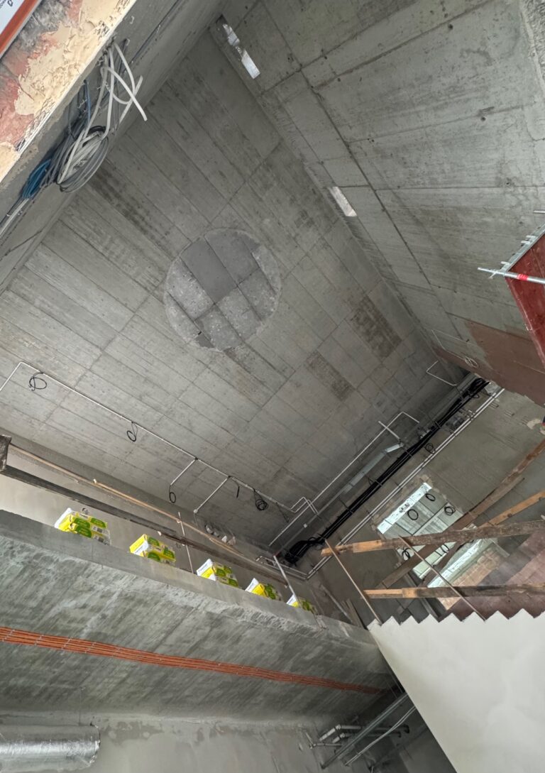 - Trwają prace instalacyjne branży elektrycznej oraz sanitarnej, zarówno wewnątrz jak i na zewnątrz