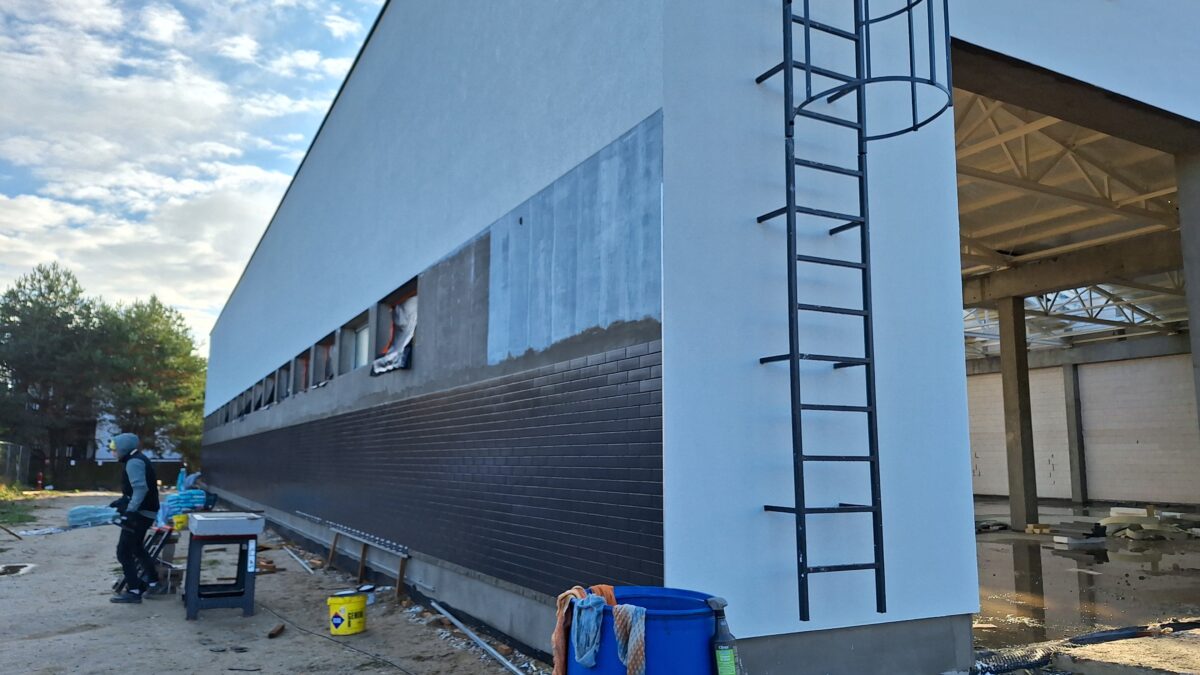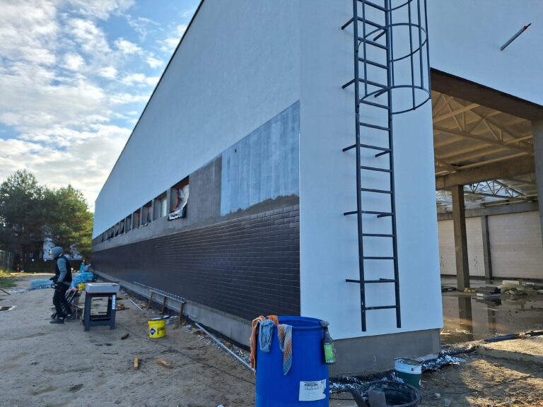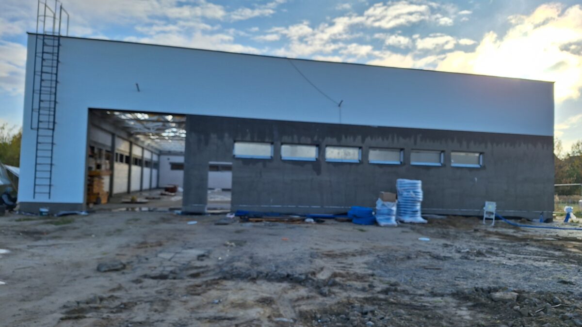 - Budynek magazynowy – dokończenie elewacji – położenie płytek klinkierowych na elewacji, dokończenie ułożenie płyt warstwowych na dachu, wykonanie posadzki betonowej przemysłowej oraz malowanie ścian wewnątrz, montaż bramy