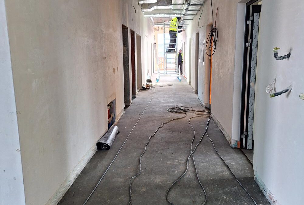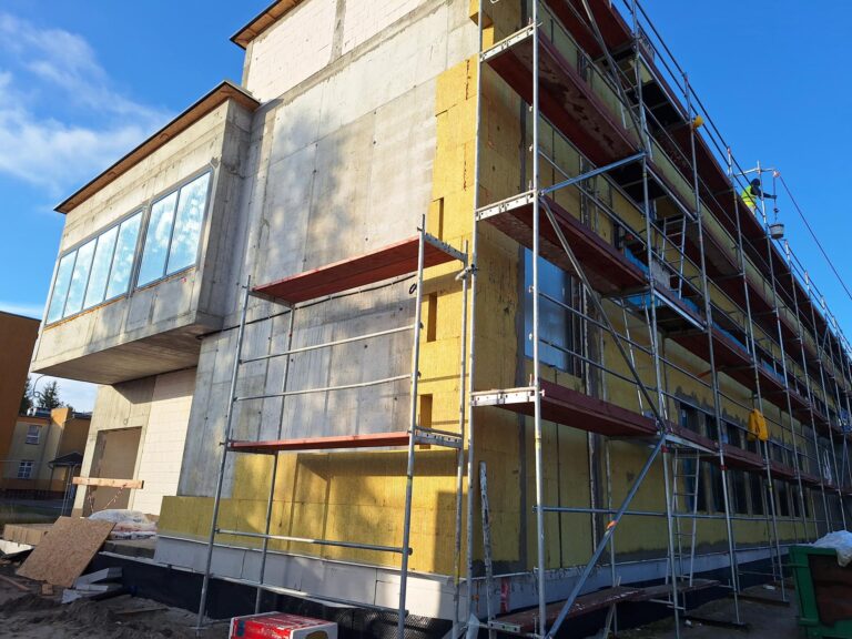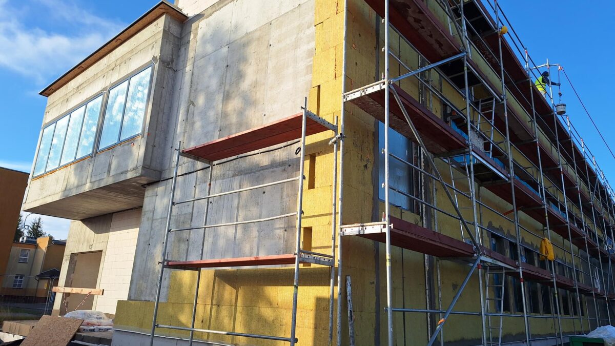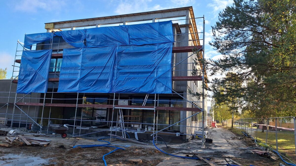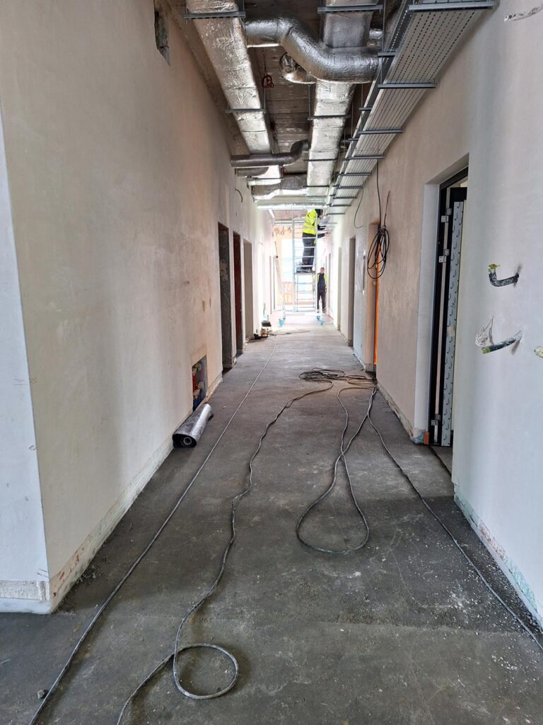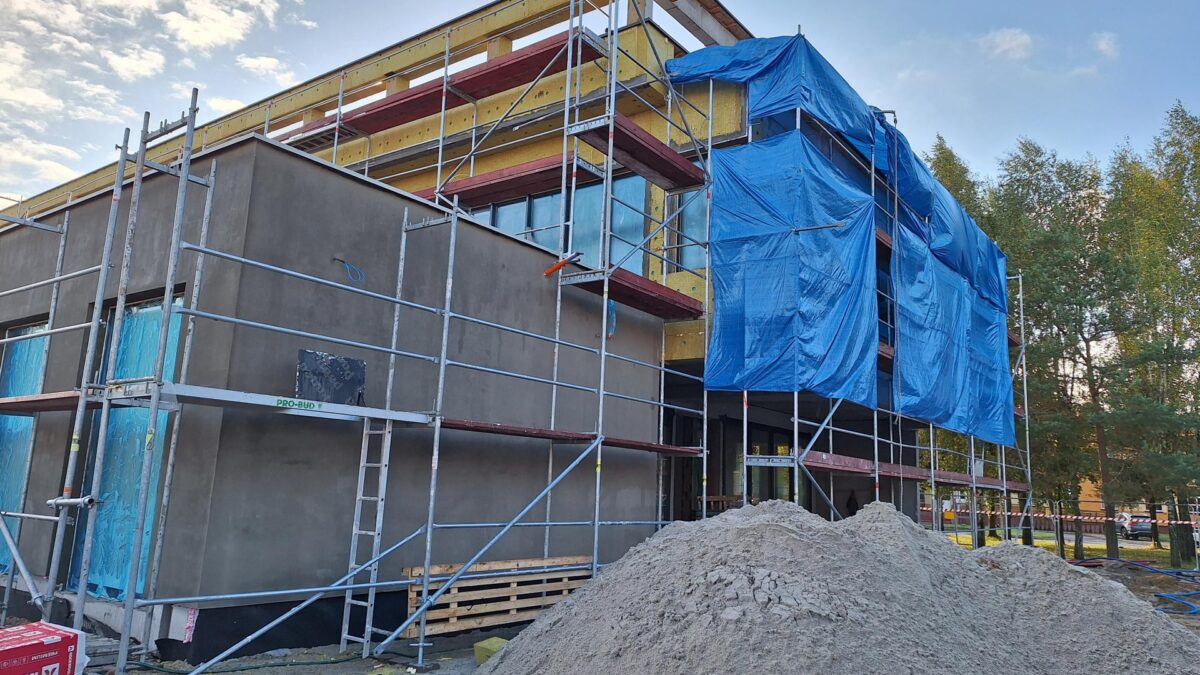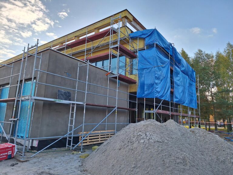 - Na budynku Urzędu Skarbowego (pozostaje do wykonania) – wykończenie obiektu wewnątrz – gładzie i malowanie, ułożenie płytek i gresu na parterze i piętrze a także montaż mebli oraz dokończenie elewacji