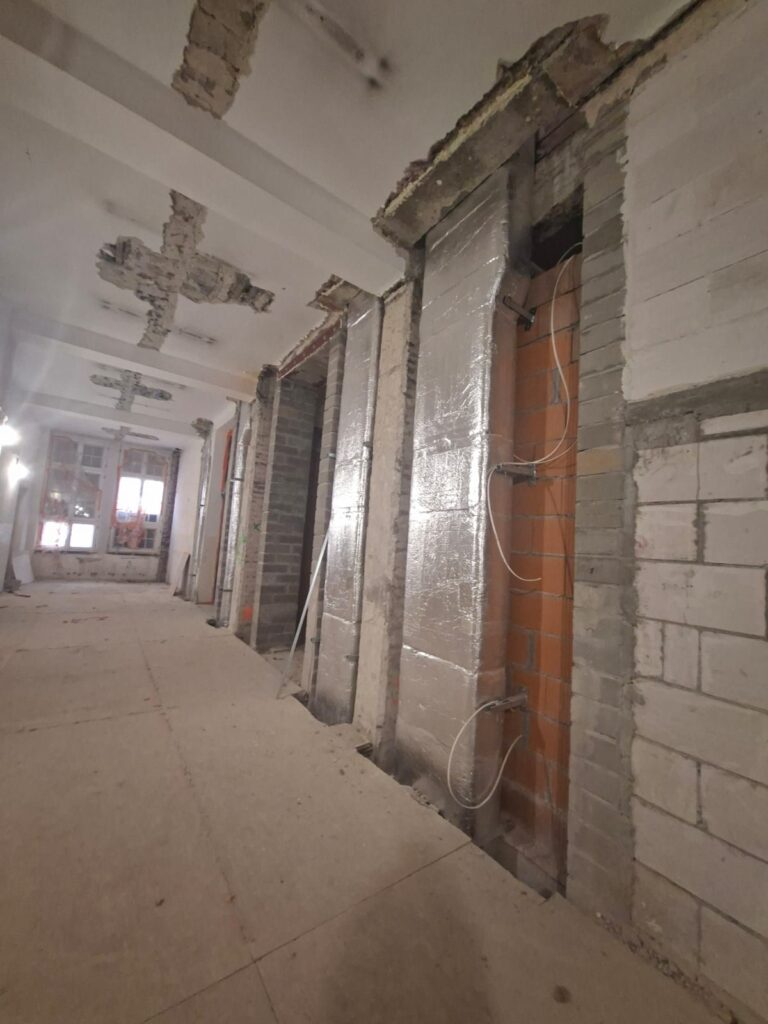 - prace rozbiórkowe, wyburzenia ścian oraz demontażowe instalacji