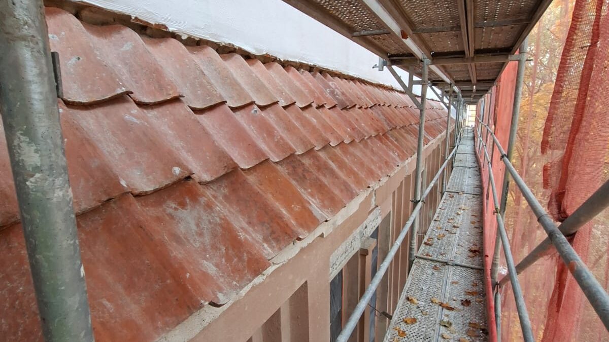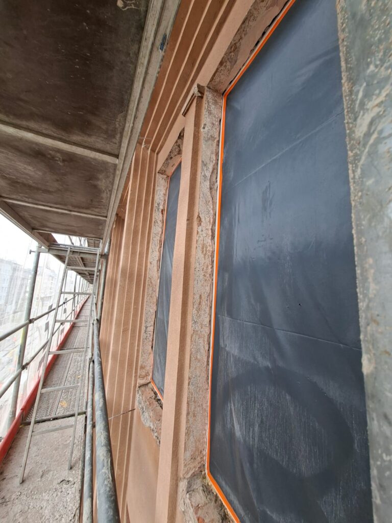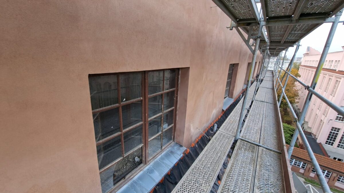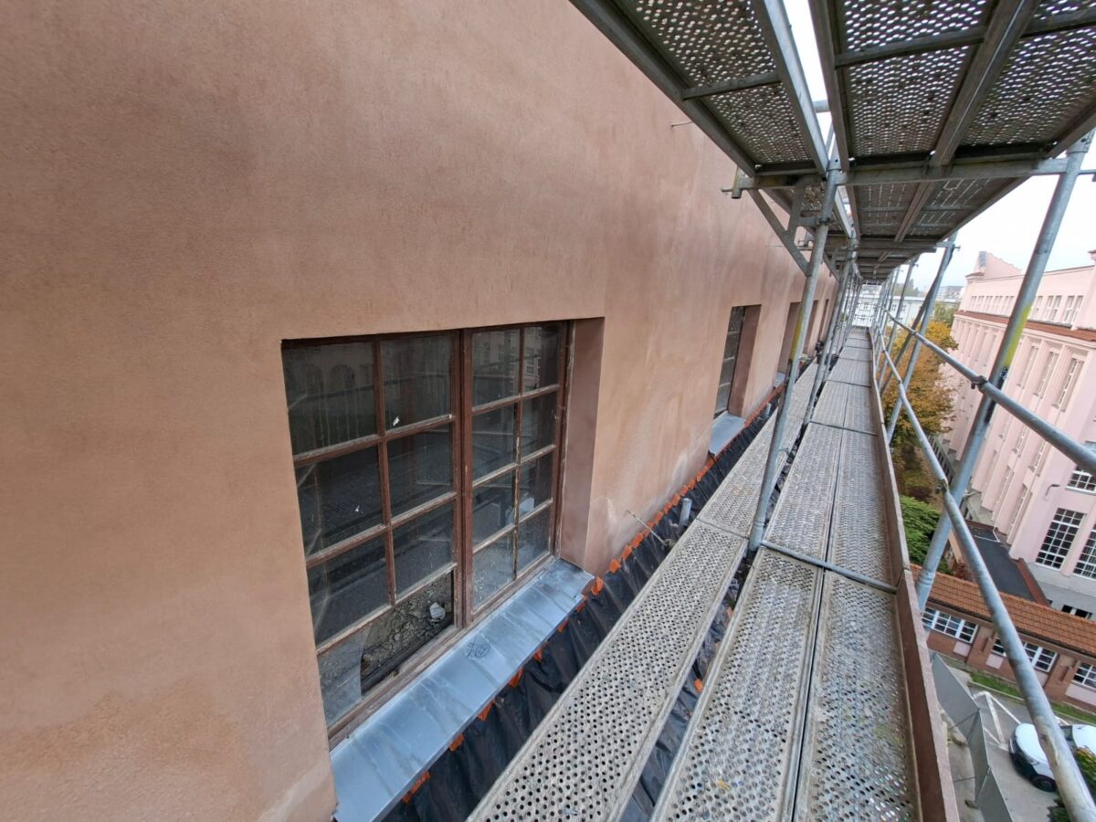- prace na elewacjach: czyszczenie, mycie, odbijanie odparzonych tynków, otwieranie spękań tynków i wzmacnianie warstw tynku na elewacji południowej,