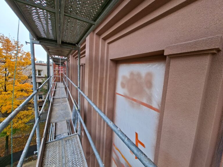 - prace na elewacjach: czyszczenie, mycie, odbijanie odparzonych tynków, otwieranie spękań tynków i wzmacnianie warstw tynku na elewacji północnej i wschodniej