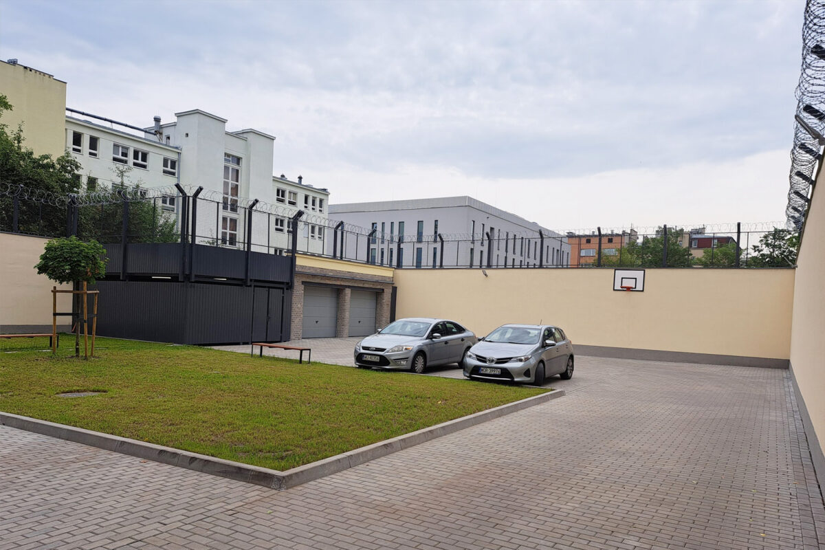 - Wymiana nawierzchni na dziedzińcu wraz z nowym odwodnieniem terenu, remont ogrodzenia oraz garaży.