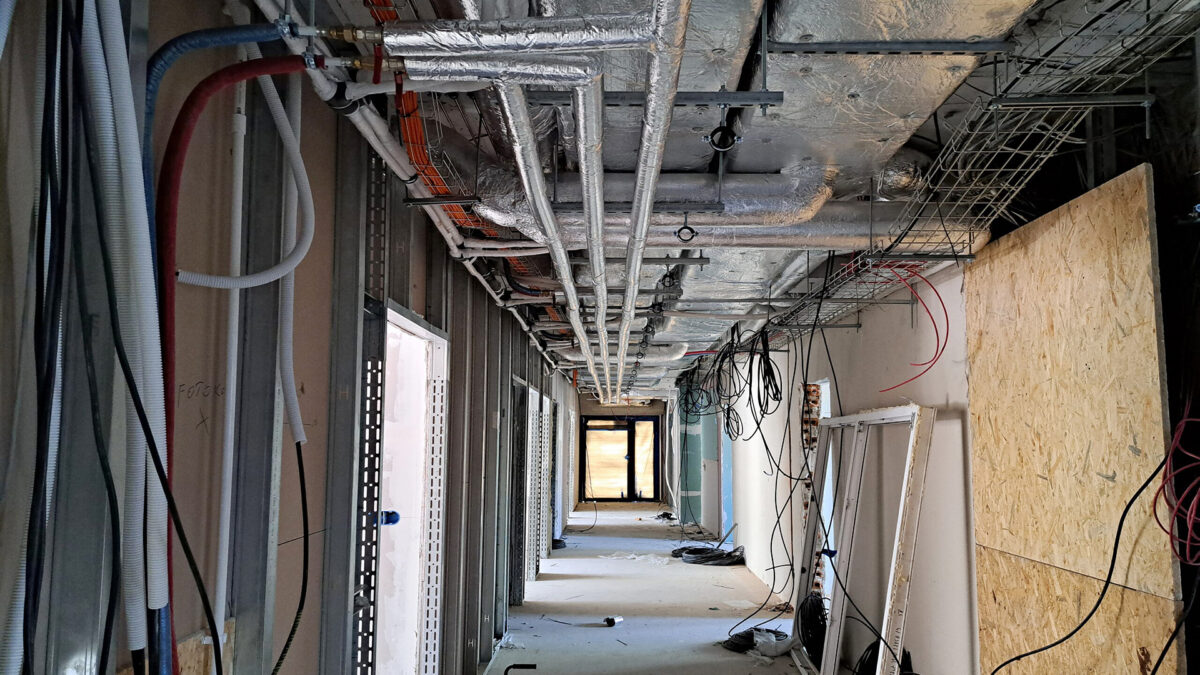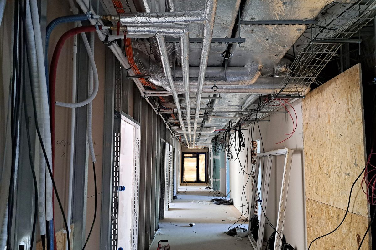 Prace rozpoczęły się w grudniu 2022 r. od wykopów i prac żelbetowych a także wyburzenia ścianek działowych oraz posadzek remontowanego skrzydła.
